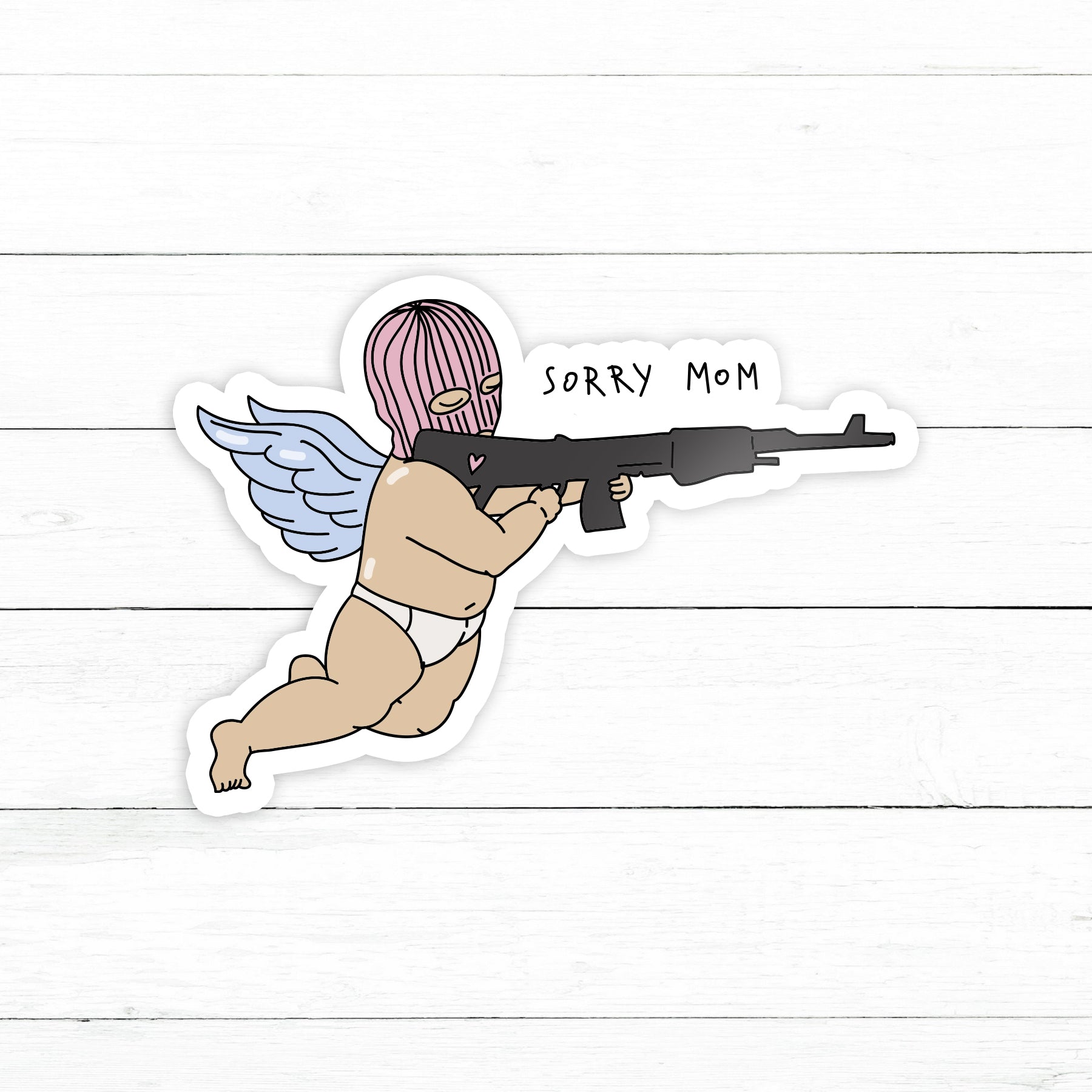 Cupid Sorry Mom Sticker | Waterproof Vinyl Decal | 3in