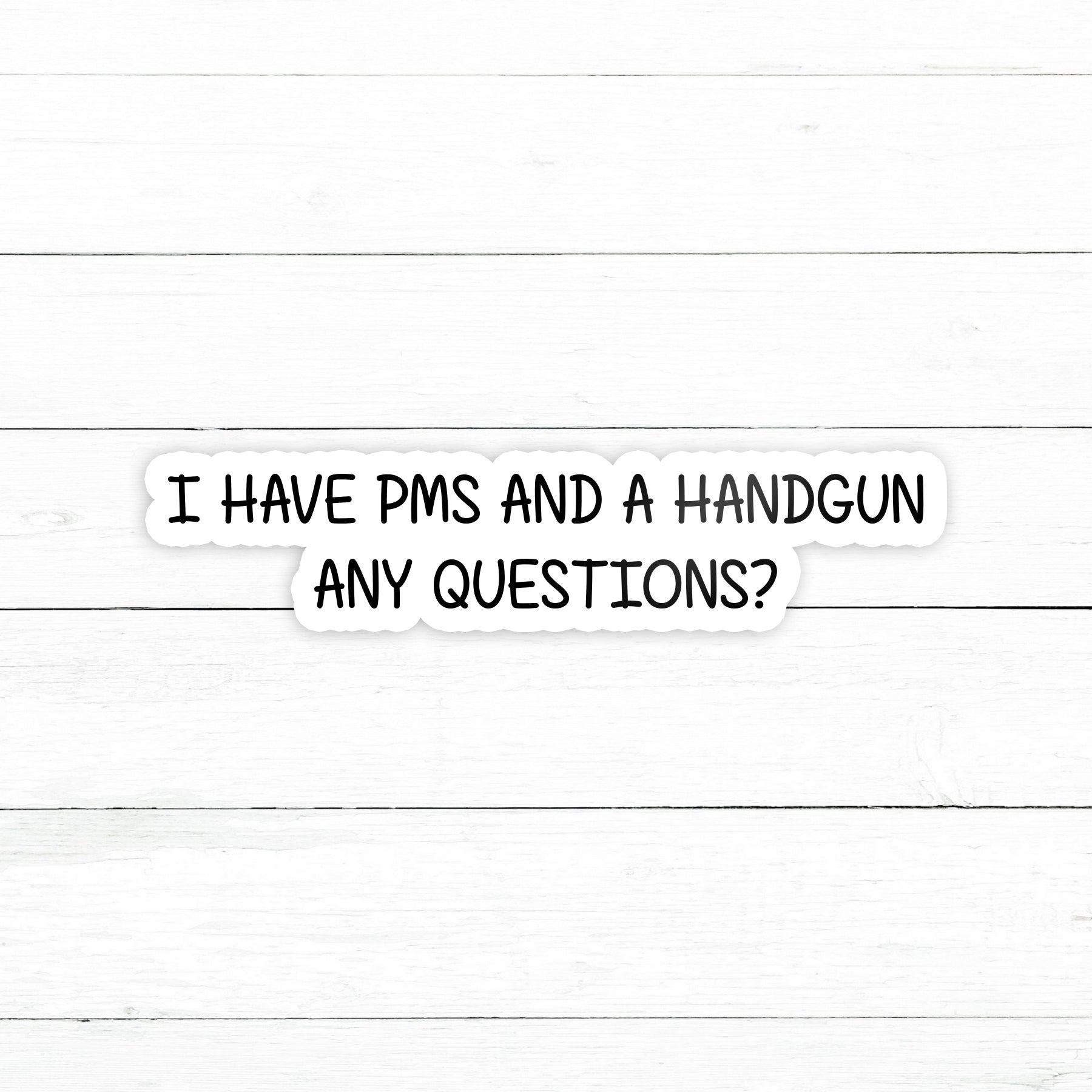 PMS and a Handgun Sticker | Waterproof Vinyl Decal | 3in