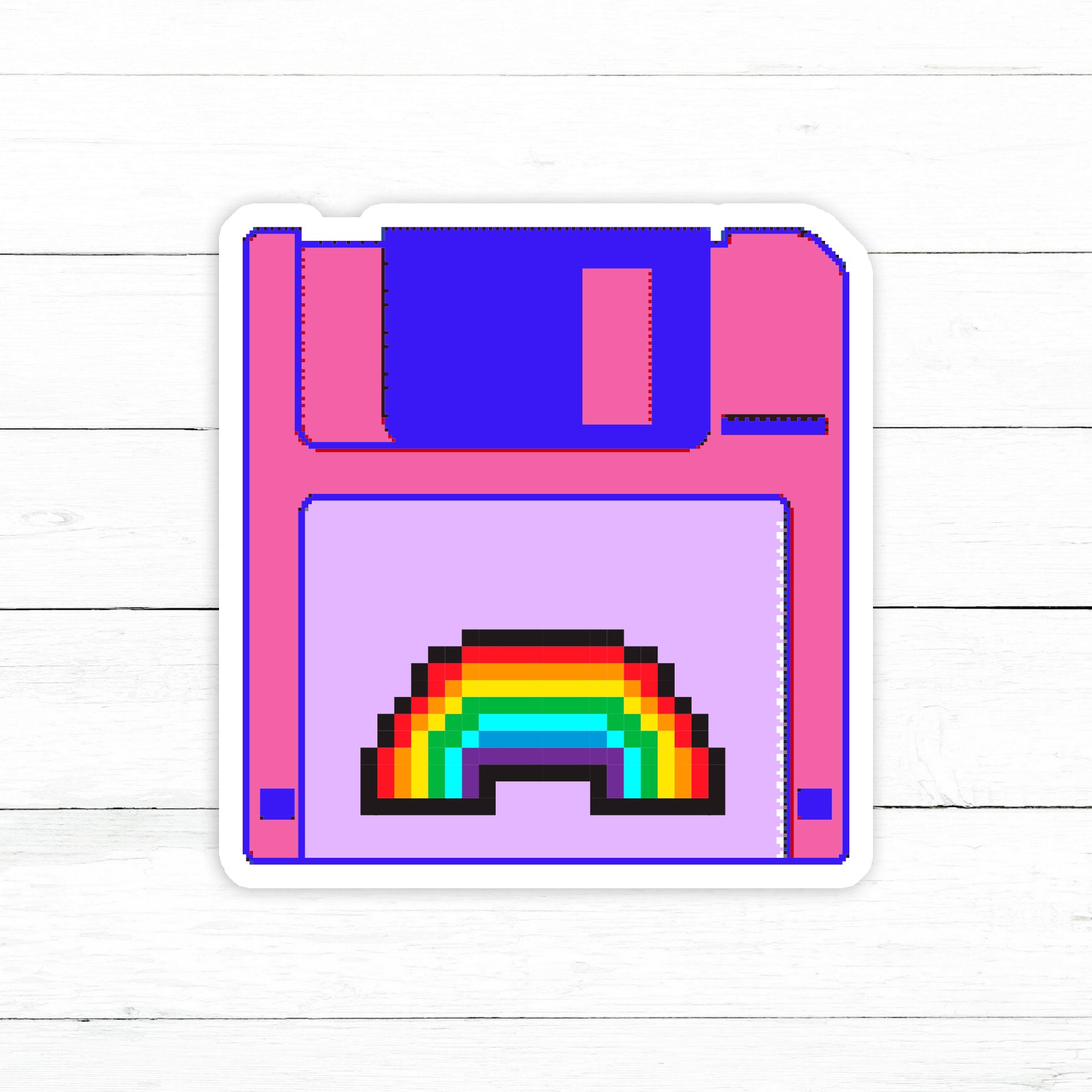 Rainbow Floppy Disk Sticker | Waterproof Vinyl Decal | 3in