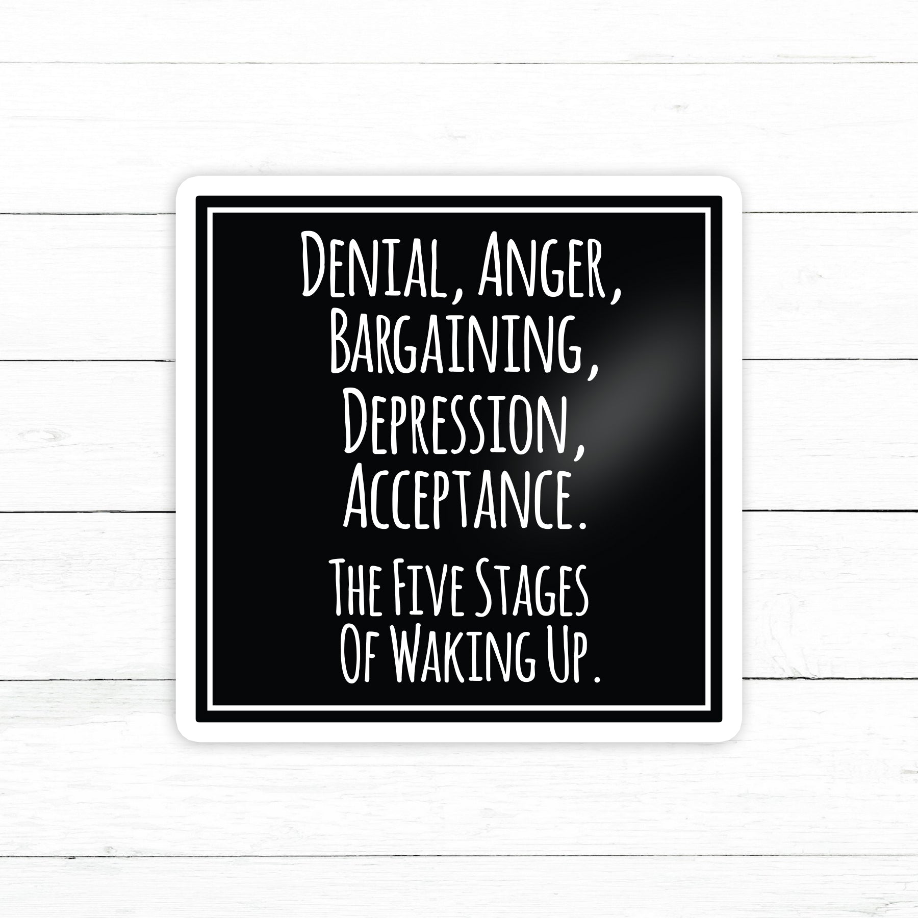 Five Stages of Waking Up Sticker | Waterproof Vinyl Decal | 3in