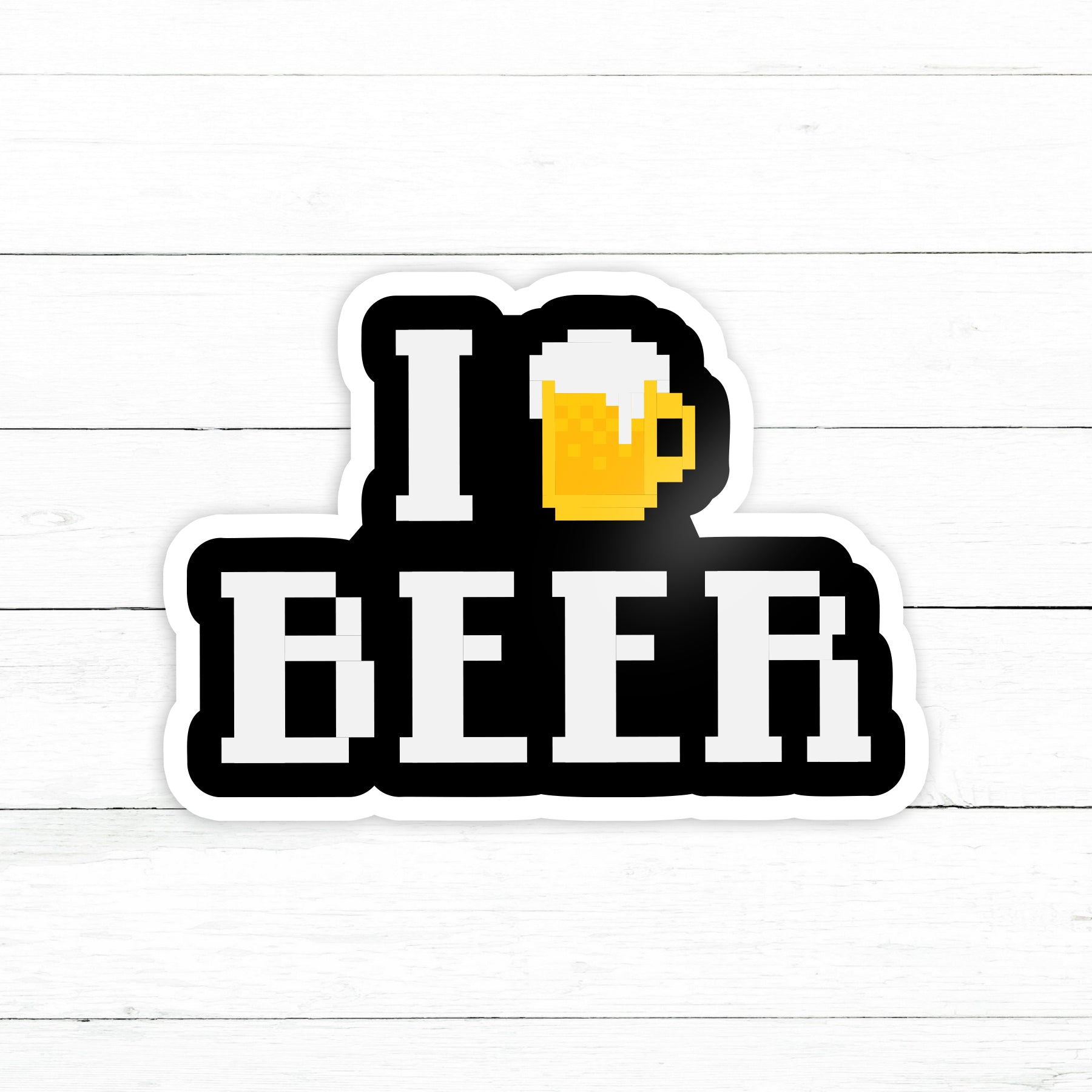 Pixel I Love Beer Sticker | Waterproof Vinyl Decal | 3in